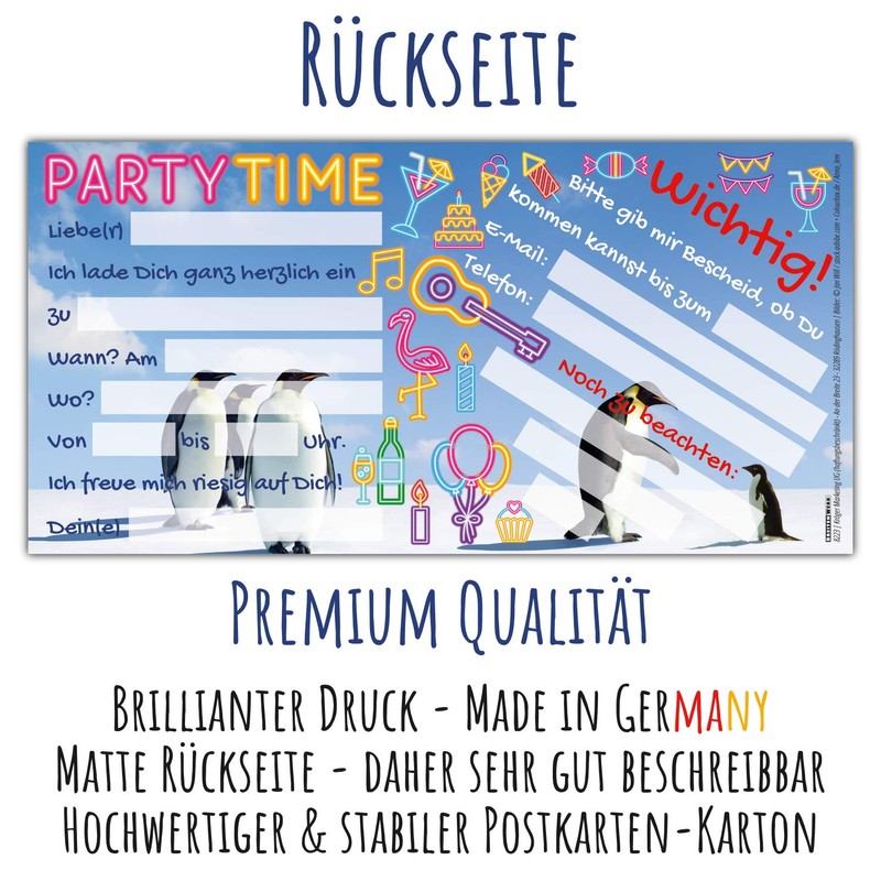 Penguine Party Invitation Cards Set of 12 - Funny Invitations for Children's Birthday or Party for Boys Girls and Adults by BREITENWERK