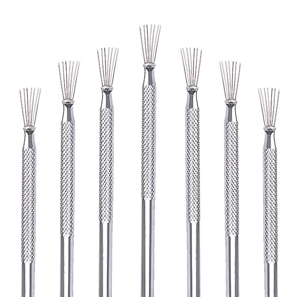 2.Fine bristles that provide the right degree of stiffness for short-stroke texturing techniques. Use it to get into small areas too. The stainless steel bristles are set firmly into an aluminum handle.