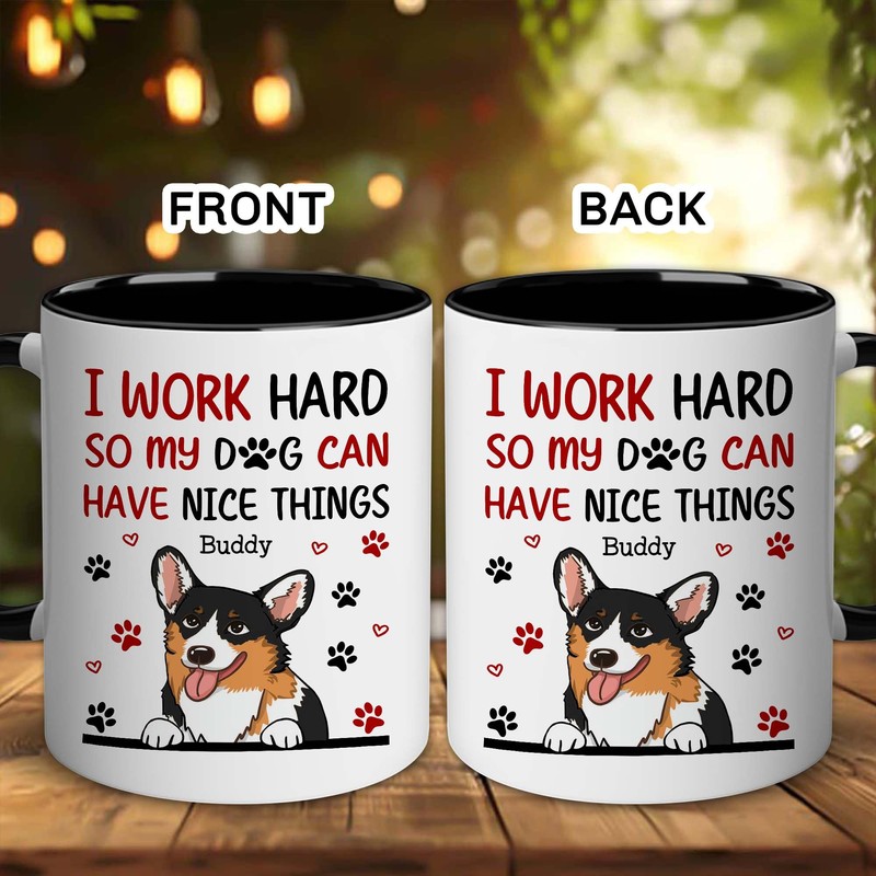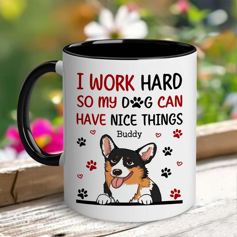 PENHAL Personalize Dog Mug (A Dog) - I Work Hard So My Dog Can Have Nice Things With Customized Dog And Name - Happy Mother's Day - Birthday Unique Gifts For Mom Woman Dog Lovers