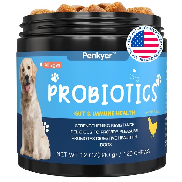 Penkyer Probiotics for Dogs, Dog Probiotics for Yeast, Itchy Skin and Itchy Ears, Digestive Enzymes with Prebiotics for Digestive Health, Probiotic Chews for Dogs Support Immunity Health - (Chicken 120 Ct)