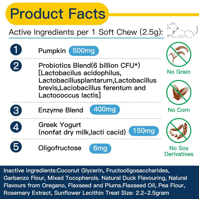 - Made in an FDA-Registered Facility: A taste your pet will love! Penkyer dog probiotics are made with globally sourced ingredients in an FDA-registered, GMP-compliant facility that meets the highest safety and quality standards. Formulated without corn, wheat, or soyand free from artificial preservatives, colors, or flavorsyou can feel confident giving your pet the best.