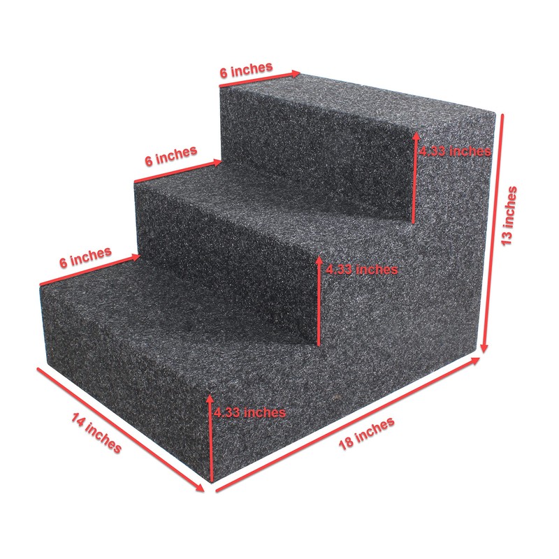 - MEASUREMENTS: Overall = 14” (W) x 18” (D) x 13” (H) / Height of Each Step = 4.33” / Depth of Each Step = 6” / Width of Each Step = 14”