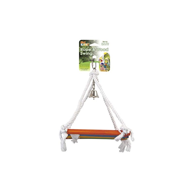 Penn-Plax Rope and Wood Platform Swing Bird Toy with Bell - BA1218