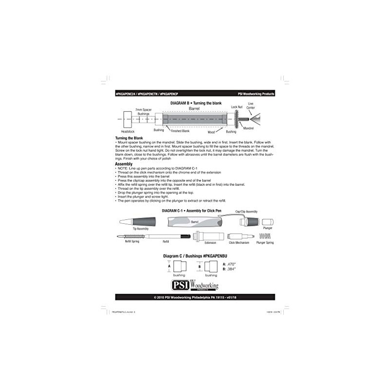 - Uses bushing set PKGABU. Minimum blank size needed to turn is 3/4" x 3/4" x 2-1/2".