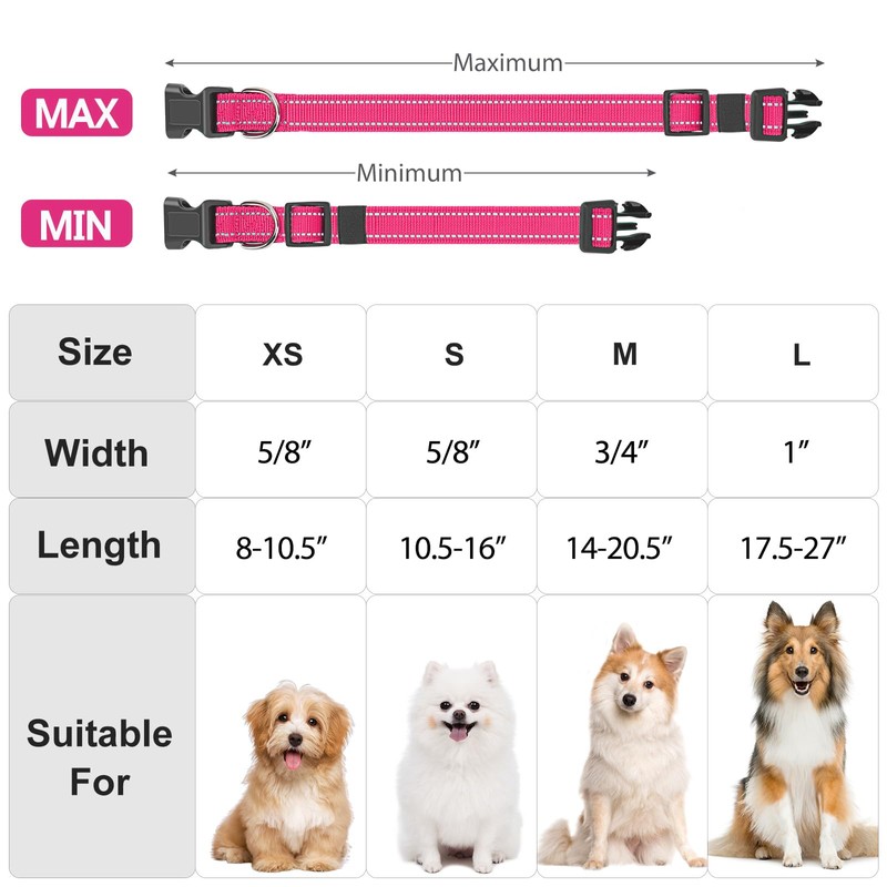 PenSeepet Reflective Dog Collar Padded with Soft Neoprene Breathable Quick Release Basic Dog Collars for Puppy Small Dogs Hot Pink