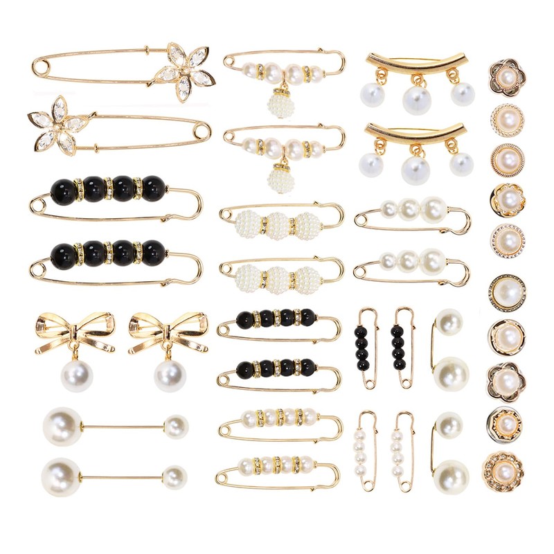 Penta Angel Pearl Safety Pins 36Pcs Socks Charm Pins Pant Waist Tightener Cover Up Brooch Button for Women Sock Hat Jacket Bag Dress Decoration (36)