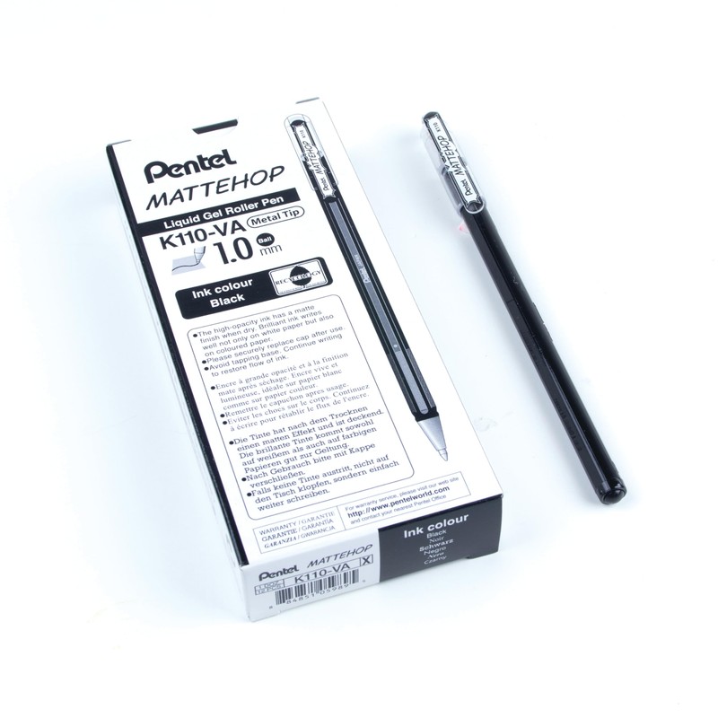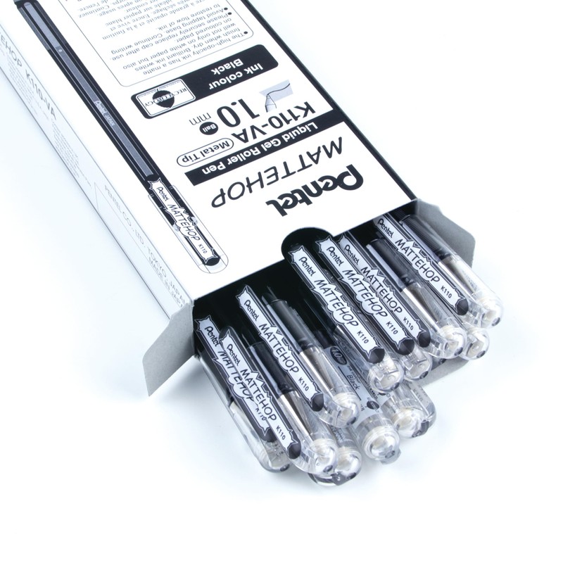 Pentel Arts Hybrid MATTEHOP Gel Roller, 1.0mm, Matte Black Ink, Box of 12 Each (K110-VA)