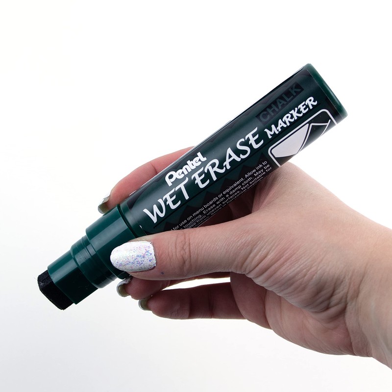 The Pentel Arts Wet Erase markers feature chalk-based ink that adheres to sealed, non-porous surfaces such as glass, windows, mirrors, metal, plastic and porcelain while remaining opaque. Once dry, The ink remains intact when exposed to Raindrops. Turn windows, mirrors and glass into works of art, special announcements or more. Customize plastic containers for easy storage labeling. Ink wipes off with a clean, damp cloth. Available in a variety of colors in chisel or JUMBO tip. Acmi certified nontoxic.
