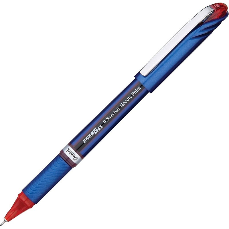 Pentel BLN25B EnerGel NV Liquid Gel Pen, .5mm, Red Barrel, Red Ink, Dozen