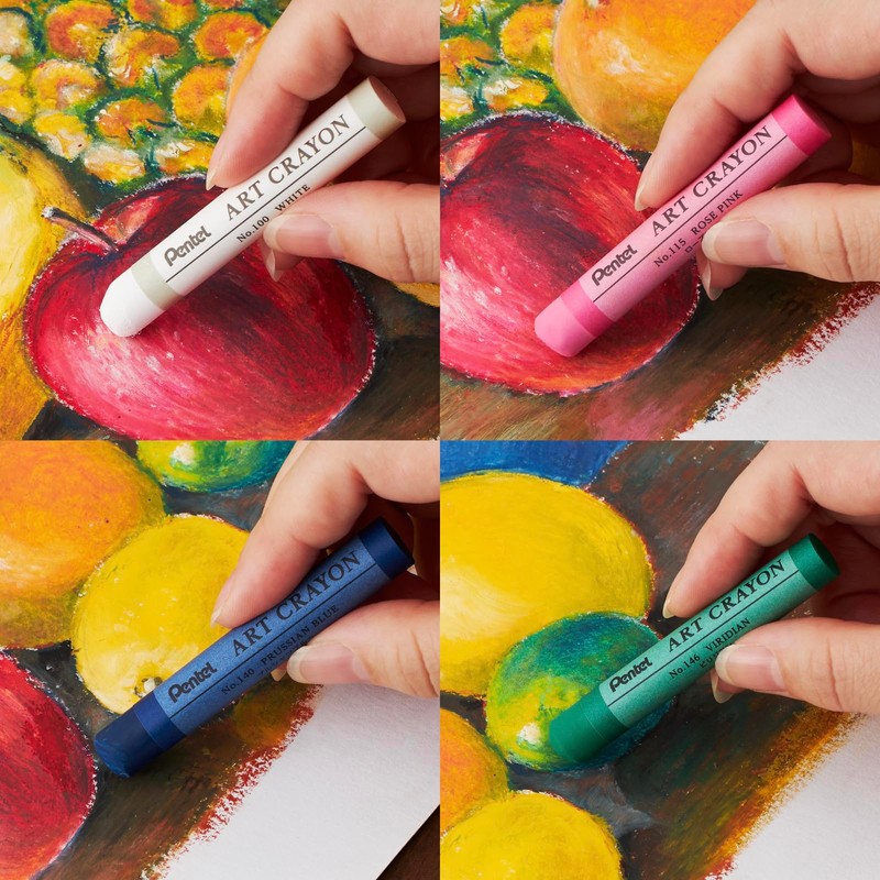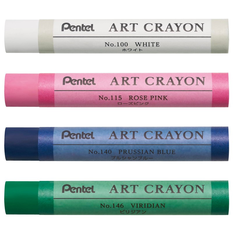Pentel Crayons, Art Crayons, Set of 4 Colors, A, White, Rose Pink, Prussian Blue, Viridian