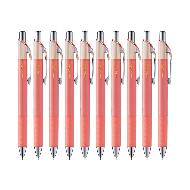 Pentel EnerGel Clena Bolígrafo Tinta Gel Líquida, Retráctil, Punto Fino, 0.5 mm, Cuerpo Rosa, Tinta Roja, Caja con 10 Piezas, BLN75L-B