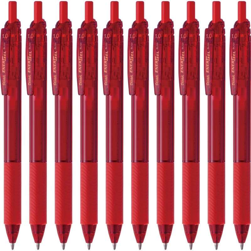 Pentel EnerGel S BL130-B Gel Ink Ballpoint Pen, Tip Diameter: 0.04 inches (1 mm), Color: Red, Count: 10