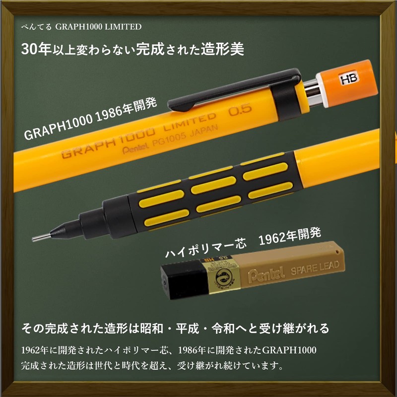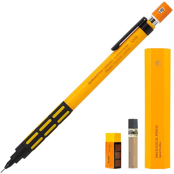 Pentel Pencil GRAPH1000 LIMITED Exclusive Retro Color | Retro Eraser & High Polymer Lead with RingLeaf Original Pen Box | (Bright Yellow)