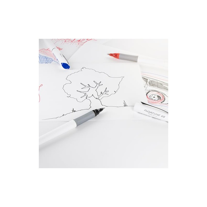 The latest evolution of rollerball ink enables your ideas to float down the stream of imagination. Floatune's water based, oil infused ink formula writes smoothly and won't skip. The dual ball mechanism inside of the pen tip allows for maximum ink flow. Experience less friction when you write. An all-matte white body provides a clean and sophisticated look to match a high-quality minimalist aesthetic.