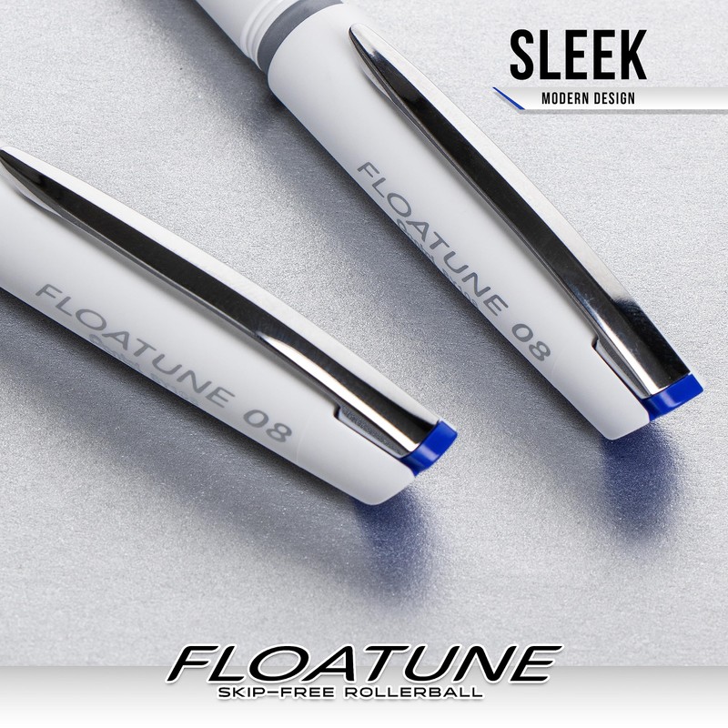 The latest evolution of rollerball ink enables your ideas to float down the stream of imagination. Floatune's water based, oil infused ink formula writes smoothly and won't skip. The dual ball mechanism inside of the pen tip allows for maximum ink flow. Experience less friction when you write. An all-matte white body provides a clean and sophisticated look to match a high-quality minimalist aesthetic.