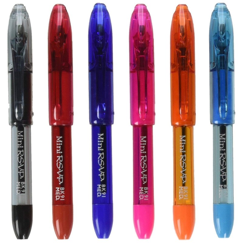 The mini RSVP is back by popular demand C proving that great things come in small packages! Never lose your pen again, thanks to a hole in the cap which allows you to attach the pen to a lanyard, backpack zipper ring or anywhere else. The mini RSVP is also the perfect size for small notebooks, pockets and purses. Available in eight great colors with brightly colored barrels, The mini RSVP is perfect for color coding and other applications where multiple colors are needed. The 1. 0mm Ballpoint tip writes smooth medium lines and the latex-free Comfort Zone grip helps reduce writing fatigue.