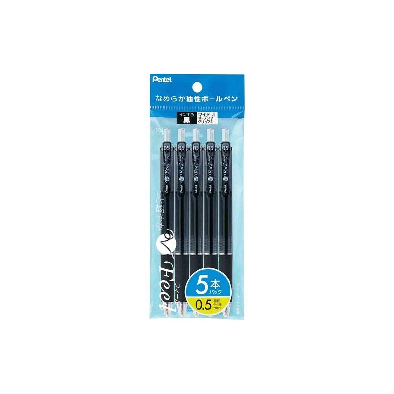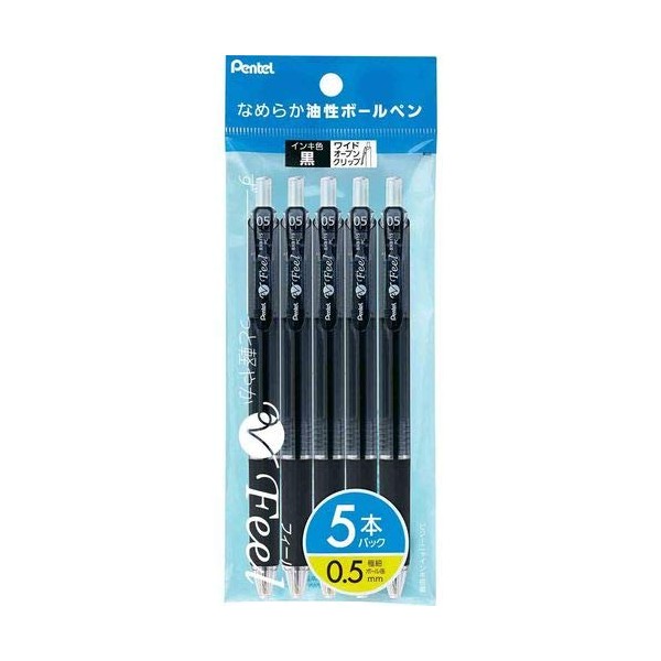 Pentel Permanent Ballpoint Pen Feel 0.5 XBXB115-A5, Clear Black, Pack of 5