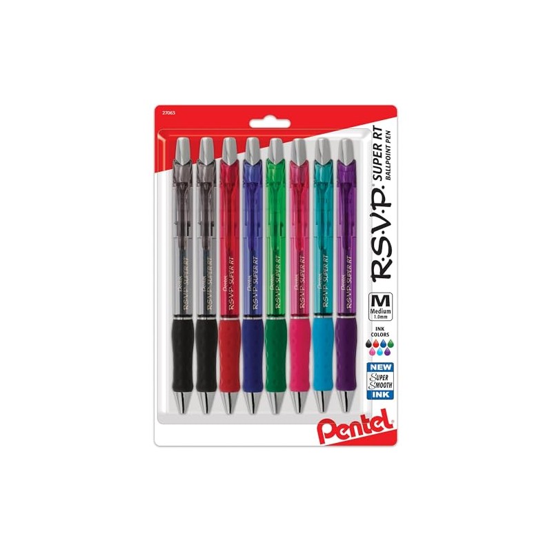 Pentel R.S.V.P. Super RT Retractable Ballpoint Pen - 1 mm Pen Point Size - Retractable - Translucent Barrel - 8 / Pack