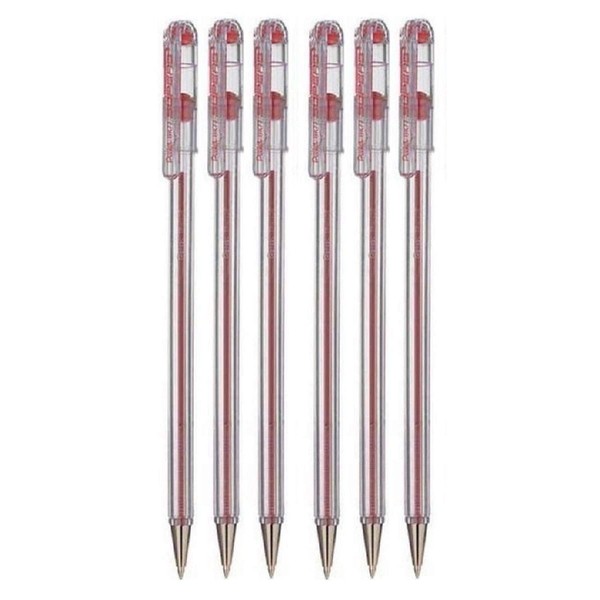 Pentel Red Superb Ballpoint Pen Ball Point Pens 0.7mm Nib Tip 0.25mm Line Width Fine Line Refillable Ink BK77 (Pack Of 6)