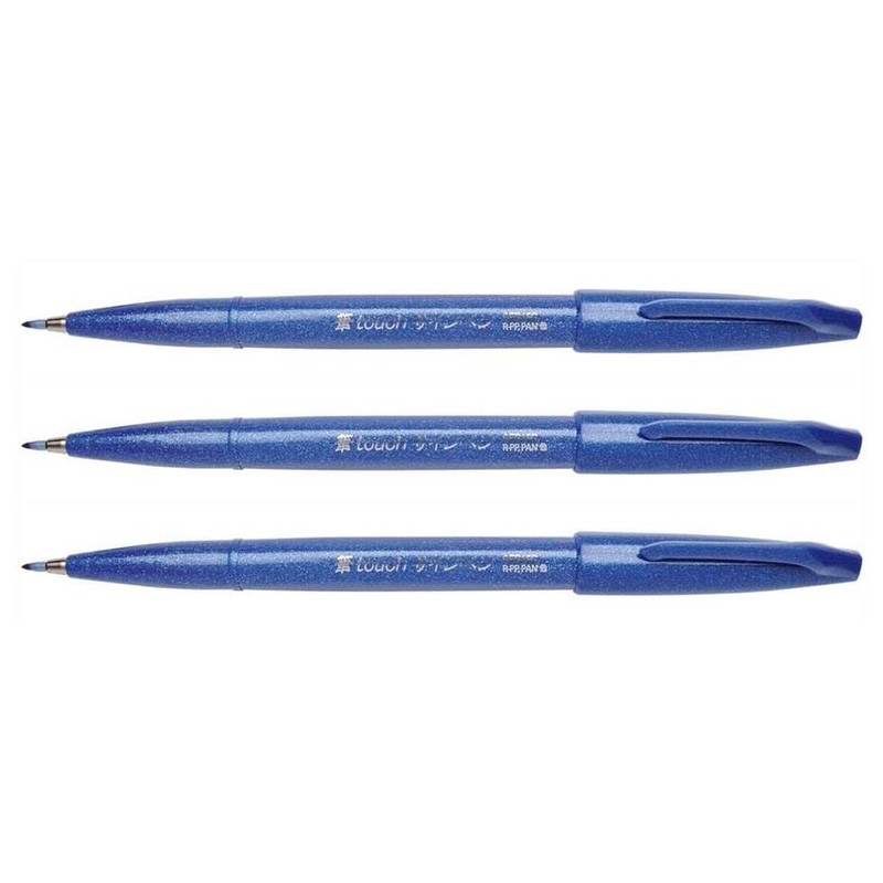 Pentel Sign Pen SES15 Set of 3 Felt Pens Flexible Brush Tip Blue
