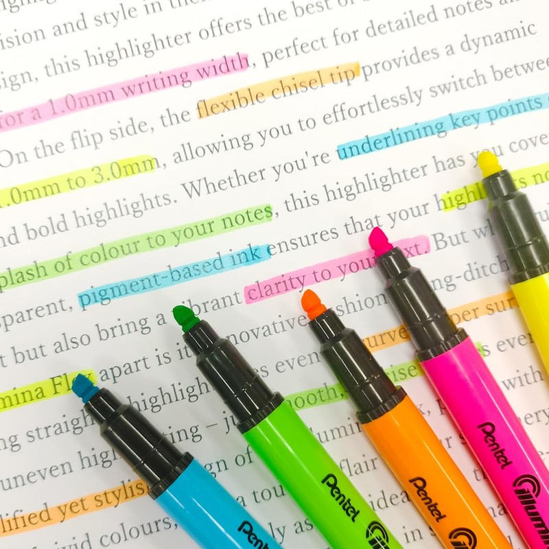 Pentel SLW8-GP Highlighter Twin Checker Two Colours - Yellow/Pink, Pack of 12