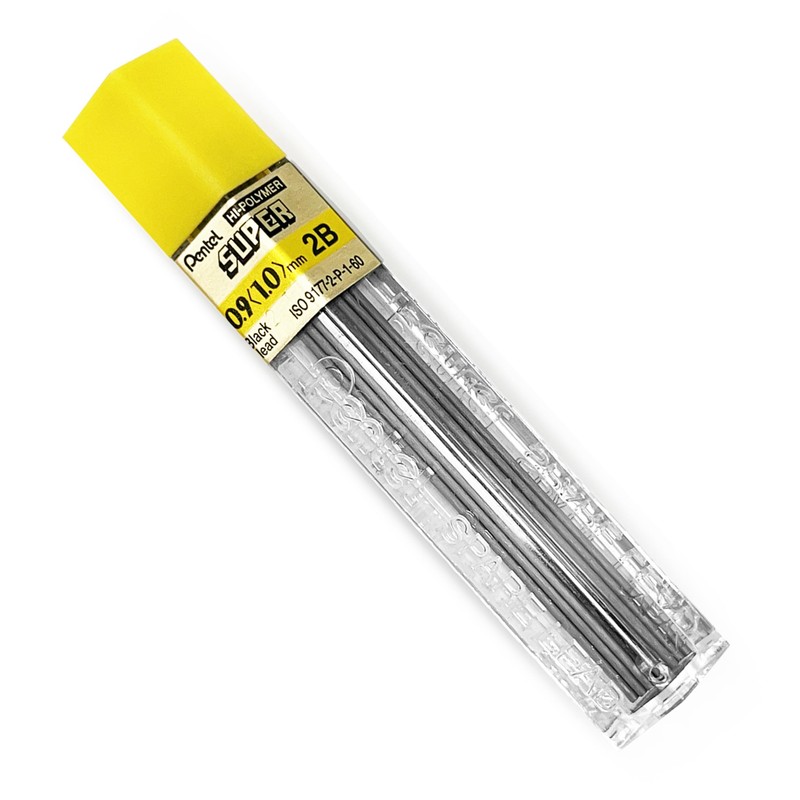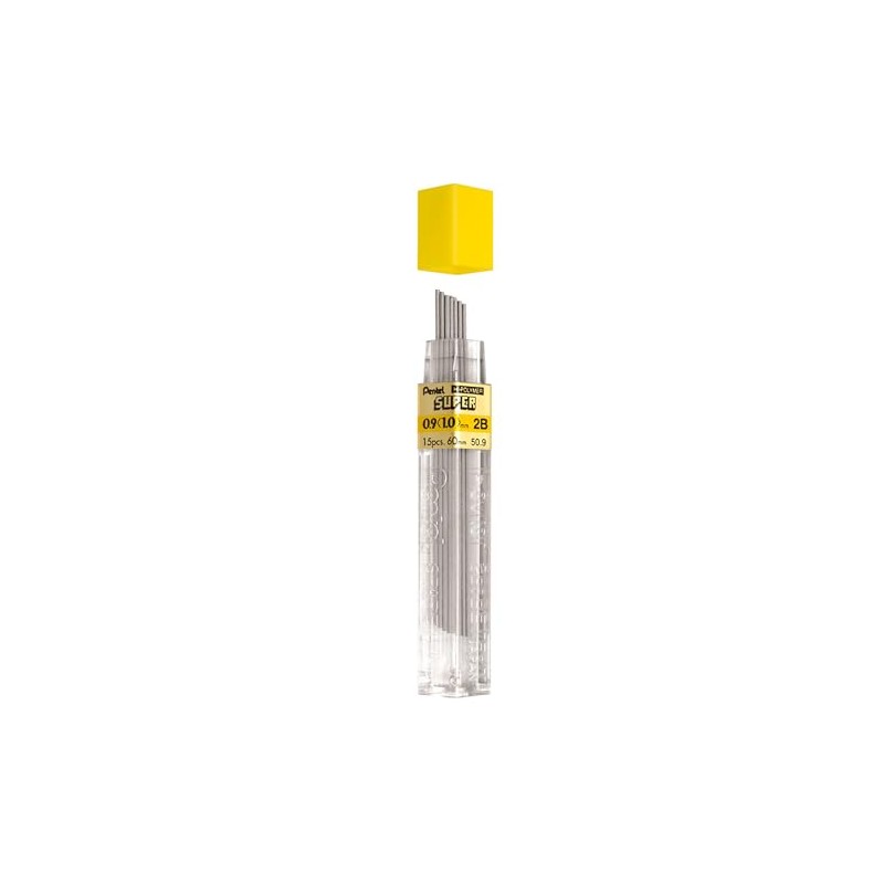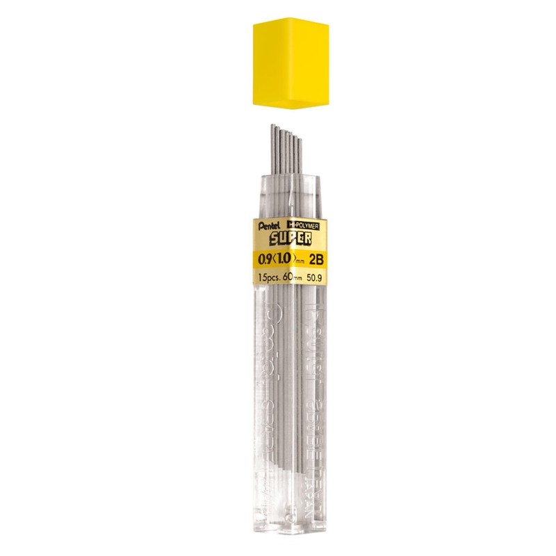 Pentel Super Hi-Polymer Leads, 0.9mm, Grade 2B, 1 tube of 15 leads