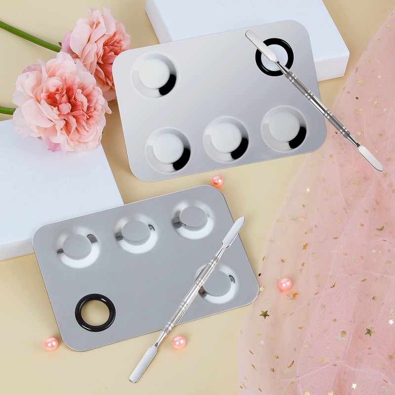 Penubuy Upgrade Mixing Makeup Palette, Stainless Steel Cosmetic Palette with Spatula Tool, Nail-art Cosmetic Palette for Mixing Cosmetic and Pigment