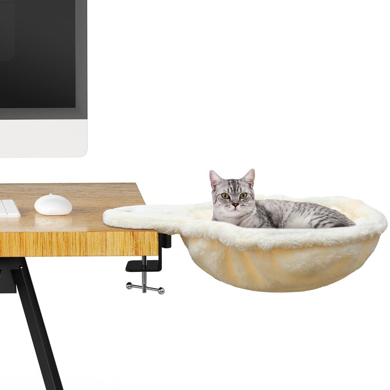 Penunentily Cat Desk Bed, Nest - Shaped Cat Bed, The Sturdy Cat Hammock for Your Desk Mount (Beige)