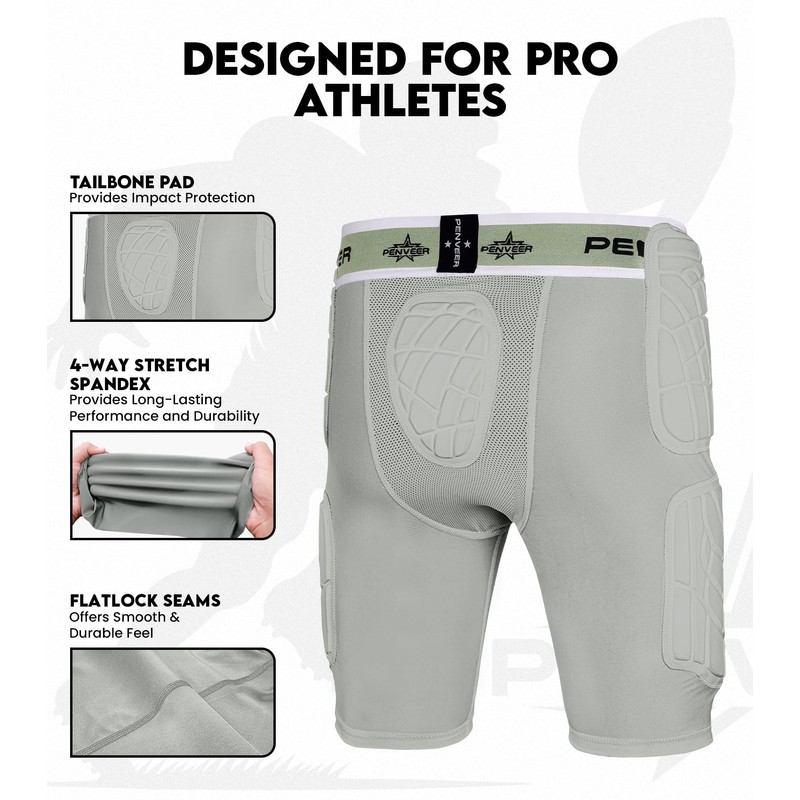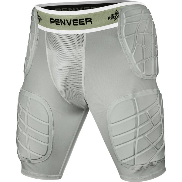 Penveer 5.0 Adult Football Girdle for Men with Cup Pocket - Padded Compression Shorts with Integrated Hip, Thigh & Tailbone Pads for Maximum Protection (Grey, AM)