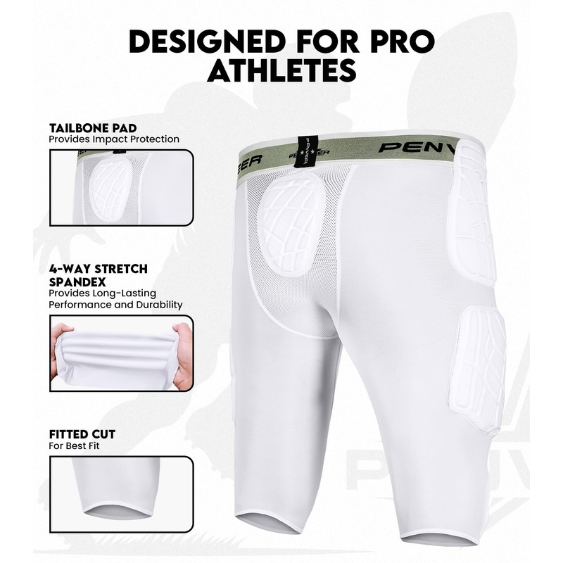 Penveer 7.0 Youth Football Girdle for Boys with Cup Pocket - Padded Compression Shorts with Integrated Hip, Thigh, Knee & Tailbone Pads for Maximum Protection (White, YXL)