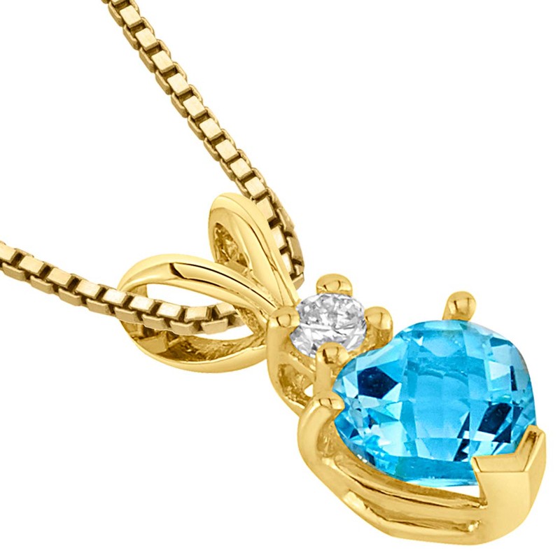 - CHARMING BLUE TOPAZ HEART PENDANT FOR WOMEN - We've taken the timeless solitaire favorite and gave it a colorful twist with our Peora 14K Gold Pendants Collection. Featuring natural gemstone and genuine Peora Swiss Blue Topaz, Heart shape, 6mm, 0.90 Carat with its signature Lagoon Blue hue for a luxurious glow. Handcut checkerboard faceting, punctuated with a genuine Round Brilliant Cut Diamond, 0.07 Carat, set in 14 Karat Yellow Gold for maximum sparkle.