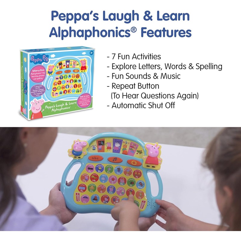 LEARN THE ALPHABET WITH PEPPA AND GEORGE – The Alphaphonics interactive toy allows little fans of the most lovable pig and her friends to learn their ABCs in seven fun-filled spelling and word games. Great for pre-school alphabet learning