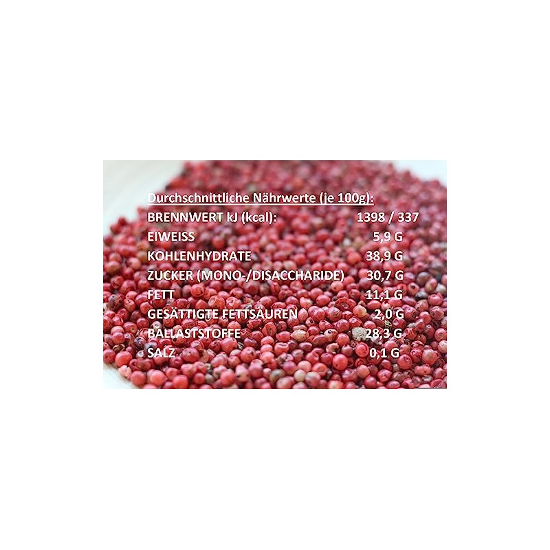 - ✅ TASTE AND FRAGRANCE: Schinus has an intense, slightly sweet taste with a pleasant sharpness. The fragrance is spicy and gives your dishes a characteristic touch.