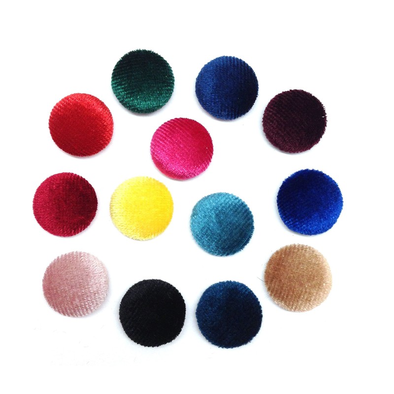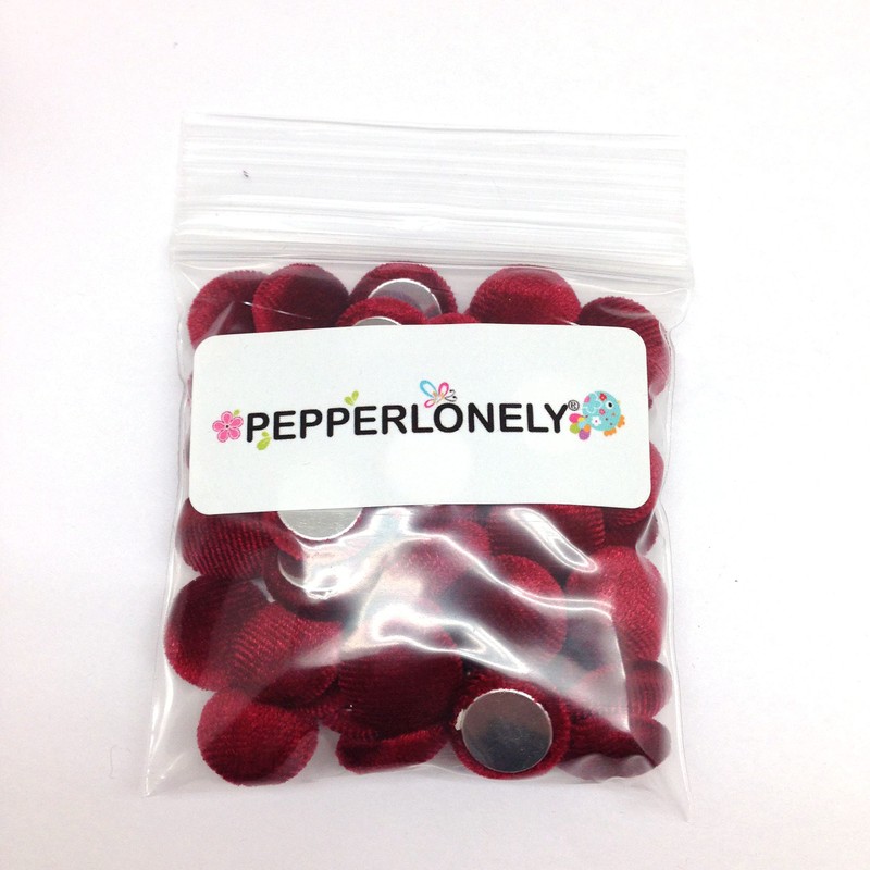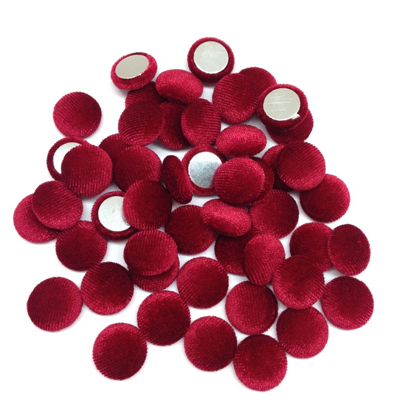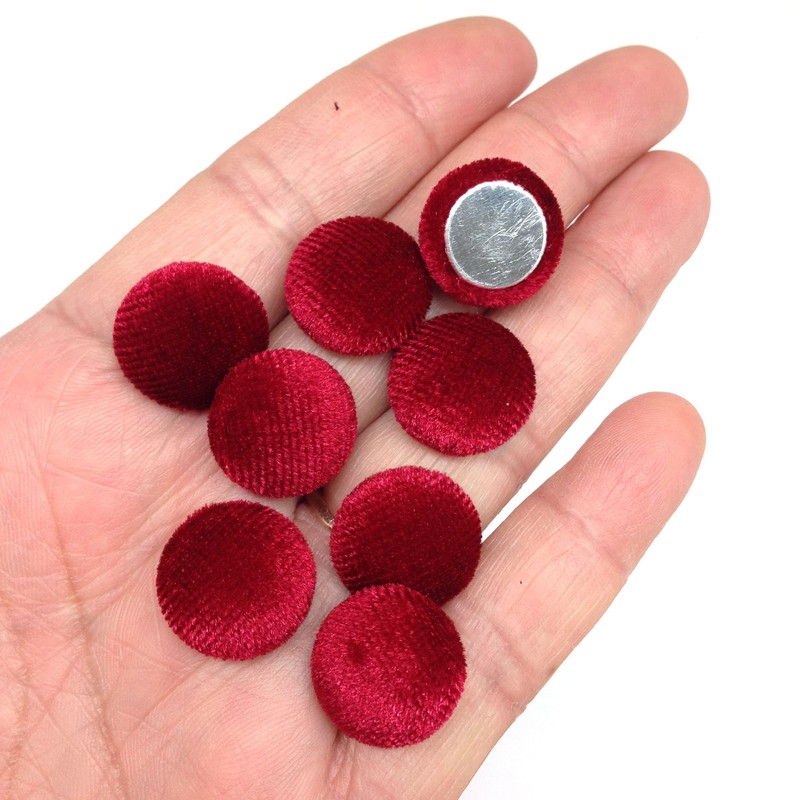 PEPPERLONELY 50PC 15mm Velvet Fabric Cloth Covered Flat Back Round Buttons, 5/8 Inch Wine Red
