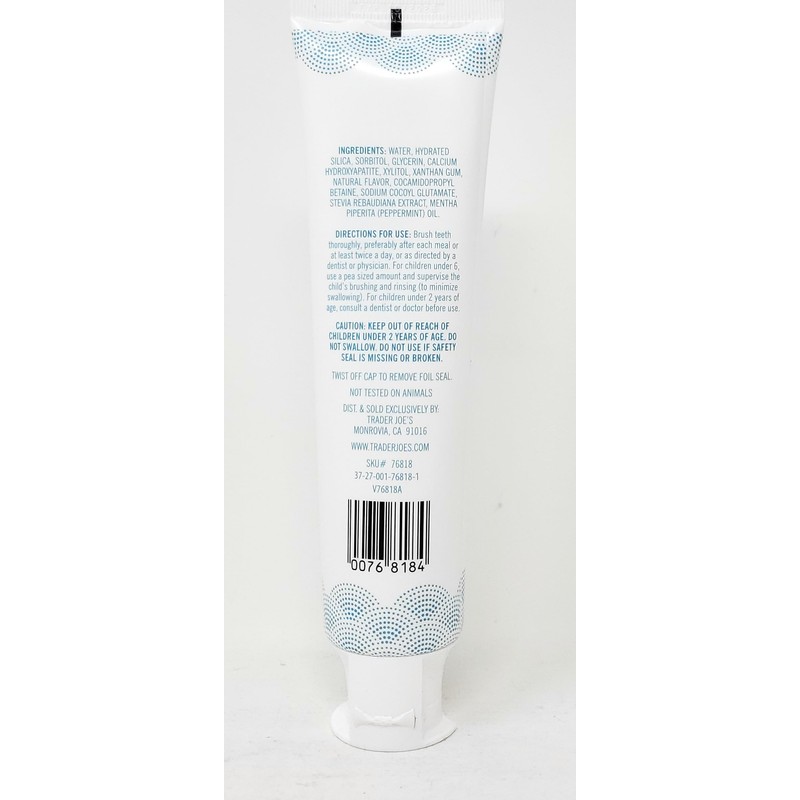 Peppermint Fluoride Free Whitening Toothpaste by Trader Joes 6oz/170g (Pack of 2)