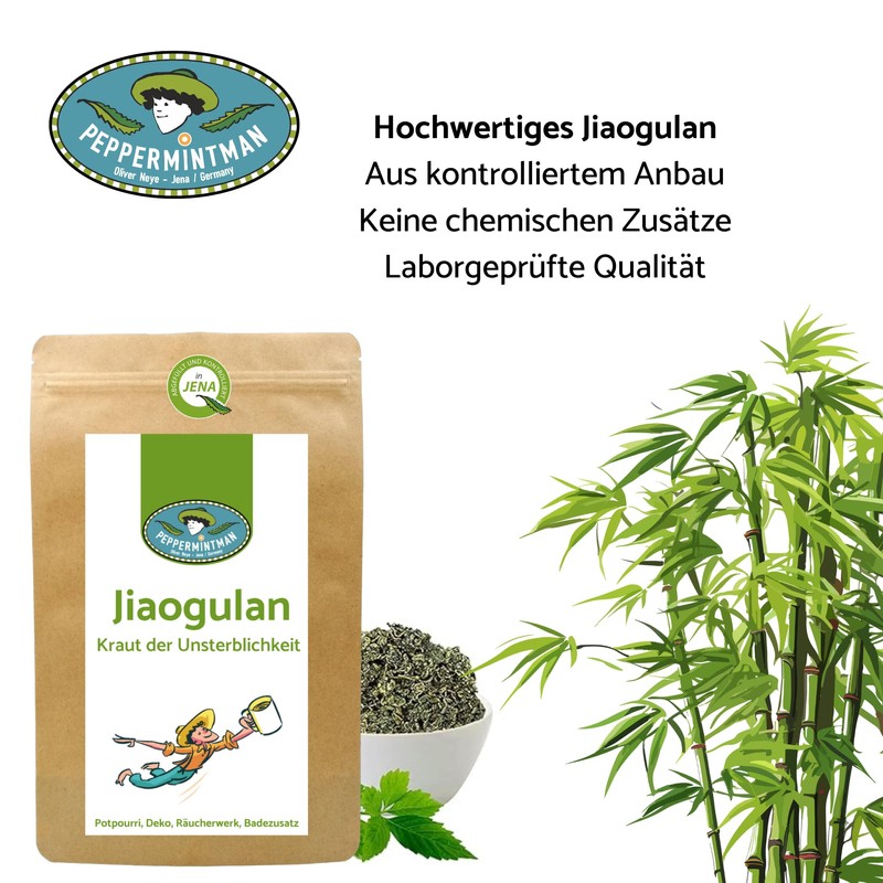 PEPPERMINTMAN Oliver Neye - Jena / Germany Jiaogulan 60g, 120g, 500g - Herb of Immortality I Without Stems, Whole, Rolled Leaves (120g)