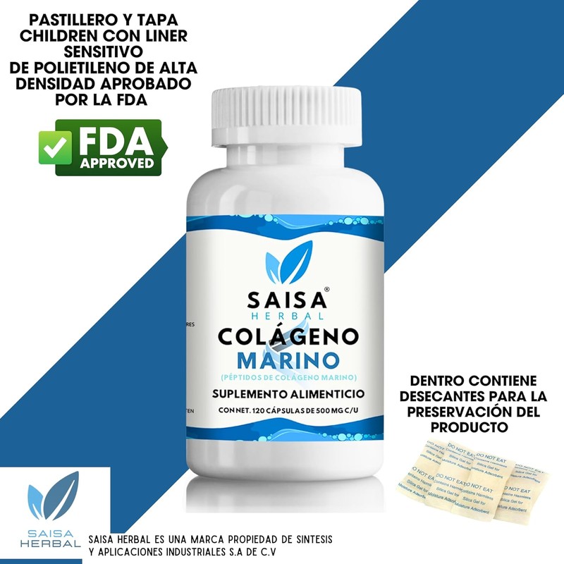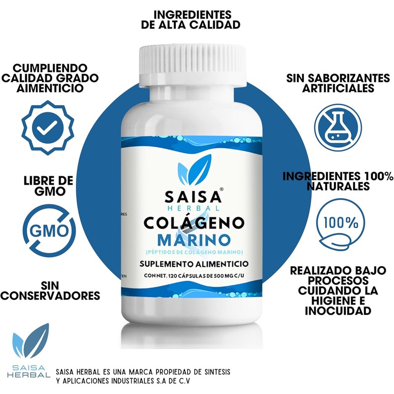 Péptidos De Colágeno Marino Puro 120 Cápsulas Saisa Herbal