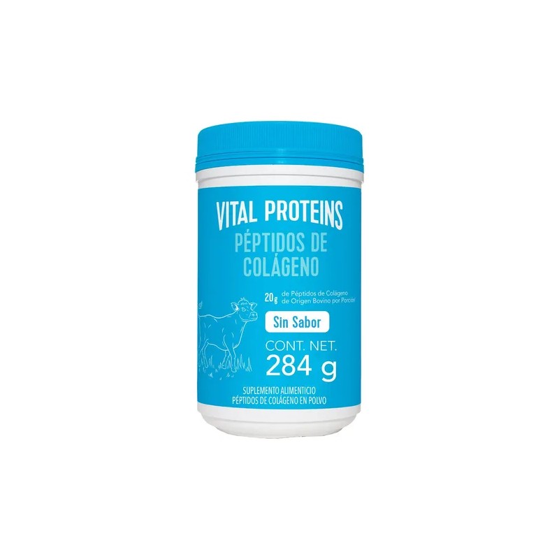 Péptidos de colágeno de origen bovino Vital Proteins 284g, es un producto que contiene un solo ingrediente, 20g de péptidos de colágeno por porción y sin sabor. No incluye lácteos, gluten ni azúcar. Ideal para mezclar en bebidas calientes o frías y se puede consumir en cualquier momento del día.