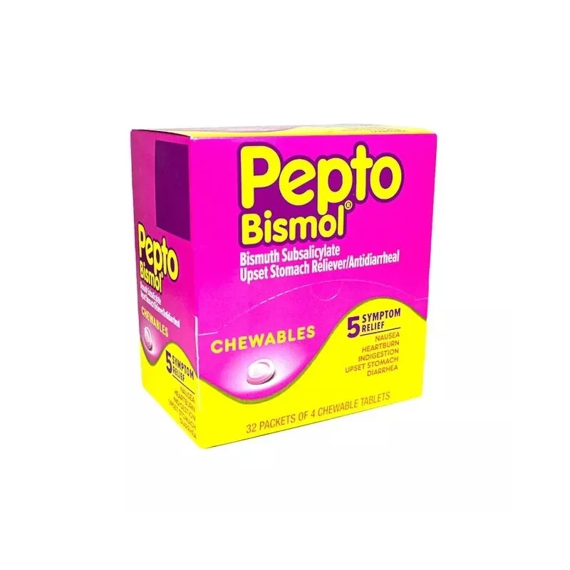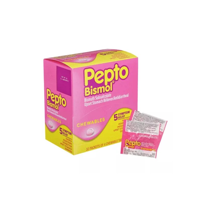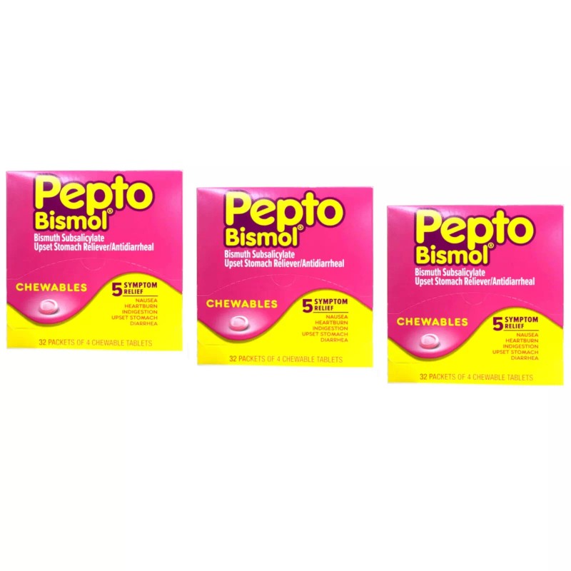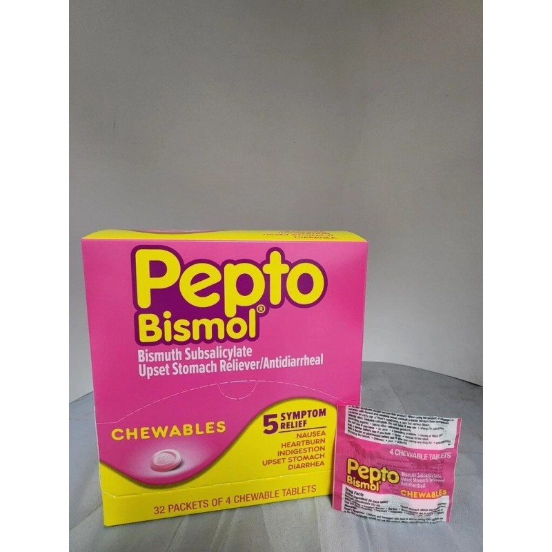 Pepto-Bismol 4 PACK Pepto Bismol Chewables Upset Stomach Reliever | 32 Packets x 4 Tablets EA