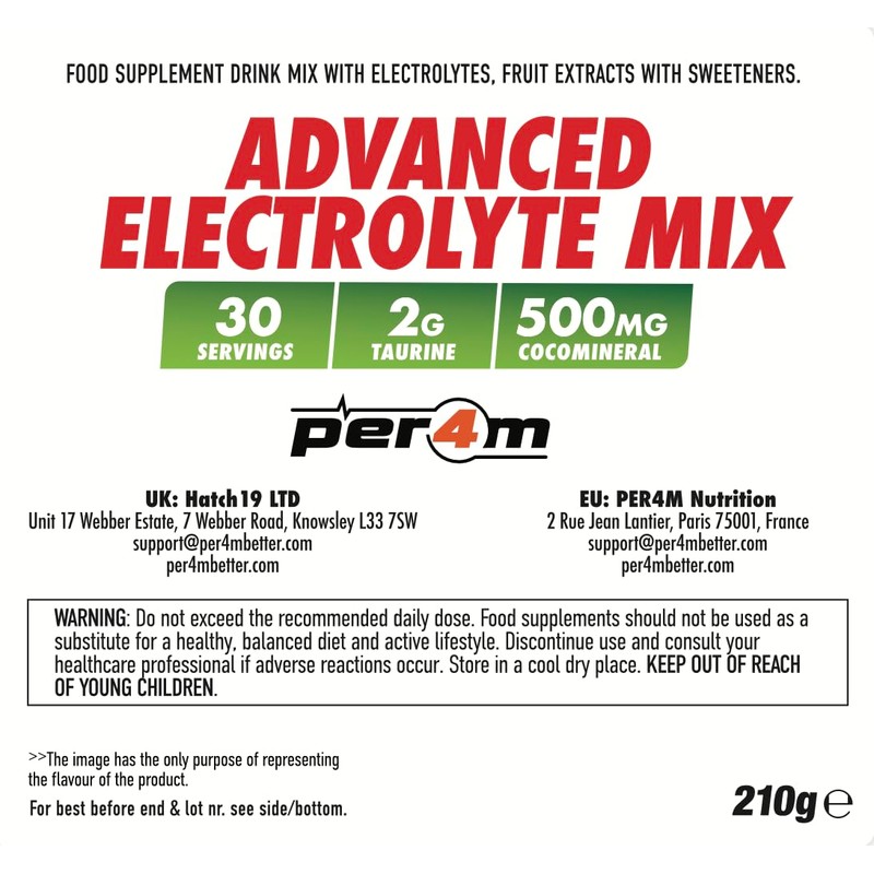 •  Per4m Hydrate Electrolyte Mix Powder to Aid Muscle Function, Cardiovascular Health & Neurological Support