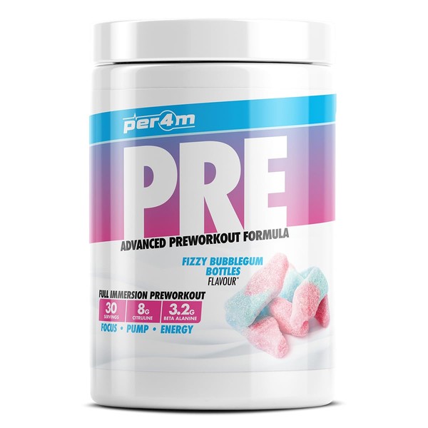 per4m Per4m Pre Workout Powder 570g | Intense Pump, Sustained Energy and Mental Focus | with L-Citrulline, Beta Alanine & Caffeine with Added Hydration (Fizzy Bubblegum Bottle)