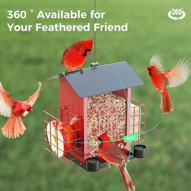 - Spacious & Easy Fill: Enjoy a 3.75Ibs large bird feeder with a wide opening for effortless refills. Fill it with seeds like black sunflower, red millet, & mixed seeds to attract cardinals, finches, bluebirds, & more, creating a bird paradise in your backyard