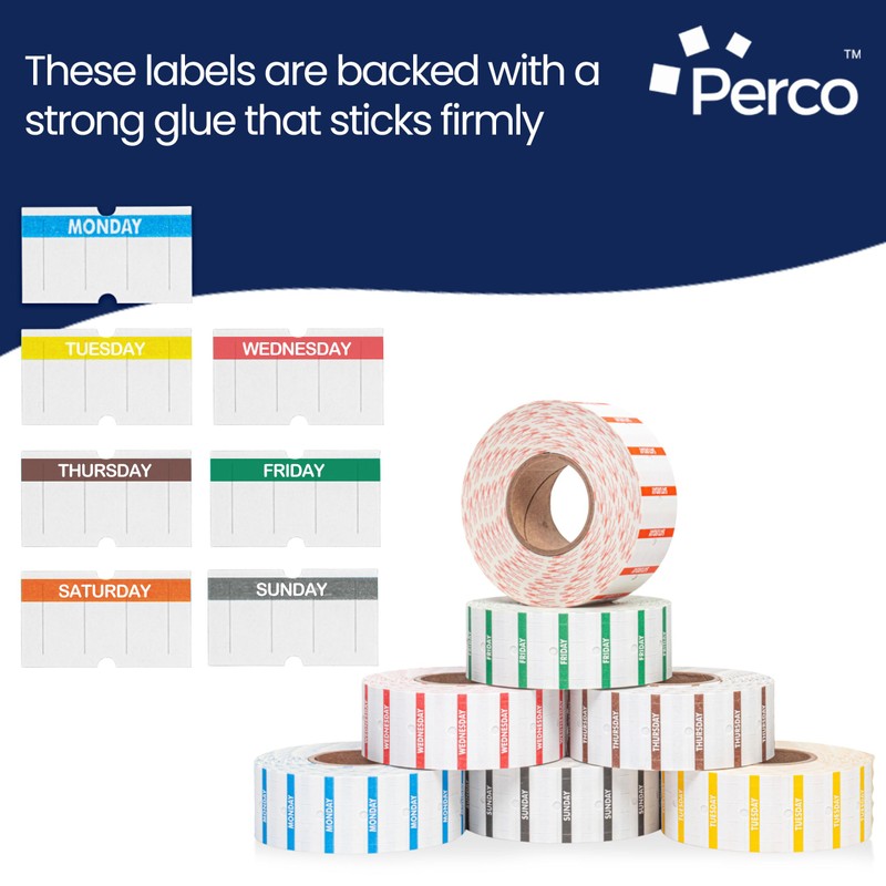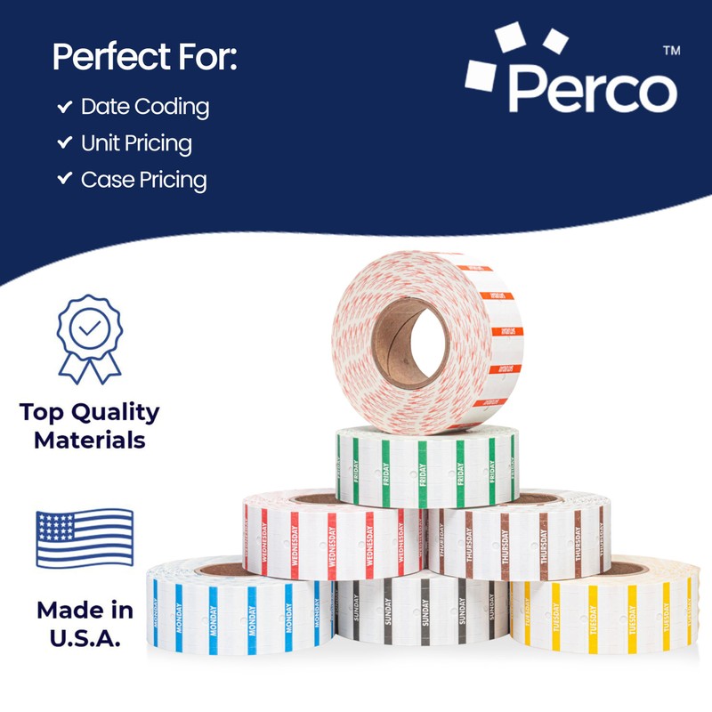 - DAYS OF THE WEEK LABELS: General purpose high quality 1 Line labels for Perco 1 Line dater gun & 1 line price gun. Also compatible with TXM 21-86 and XLPRO II marking gun labelers