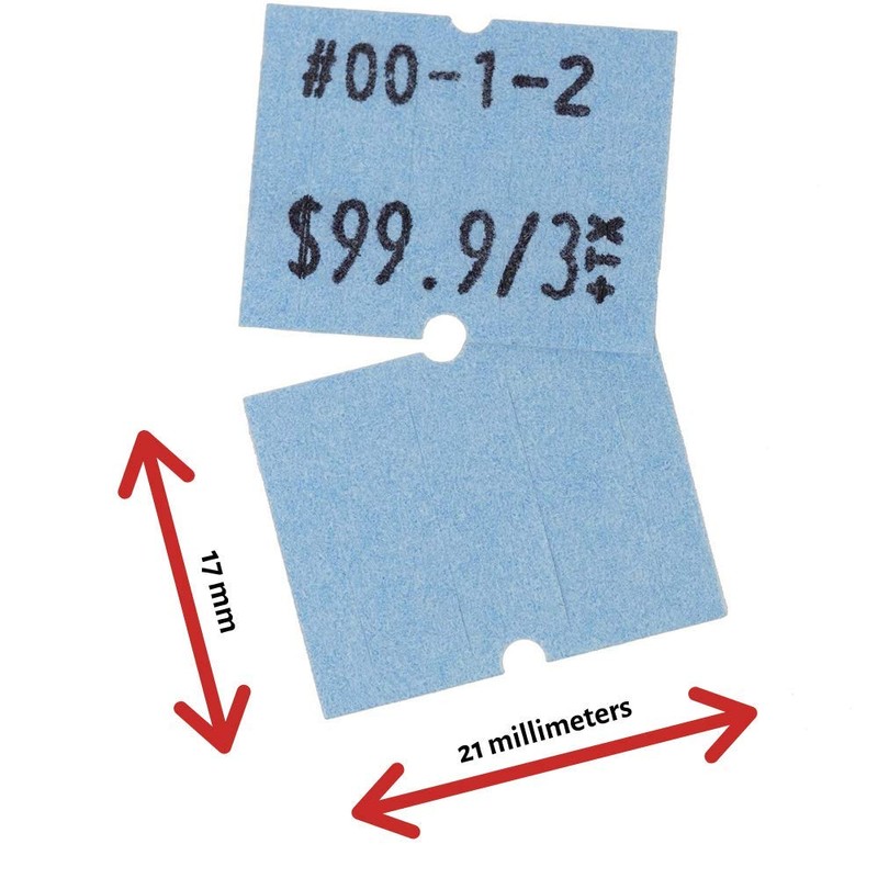 These labels come in a plain blue color, which makes it easy for both customers and staff to quickly see the price label. They are backed with a strong, secure adhesive that sticks easily. There’s also a security slit in each label to prevent tampering.