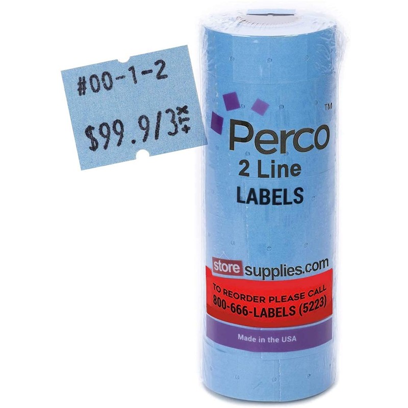Perco 2 Line Blue Labels - 1 Sleeve, 6,000 Blank Pricing Labels for Perco 2 Line Price and Date Guns