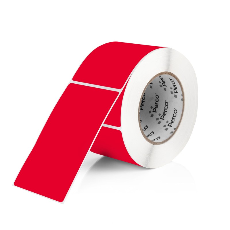 Perco Red 3x5 Inch Rectangle Sticker Labels with Permanent Adhesive - 500 Labels per Roll - Vibrant Colors, Strong Adhesion - Made in USA