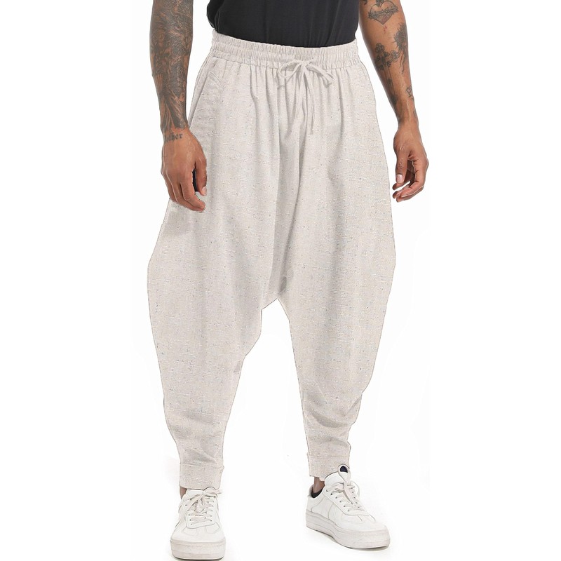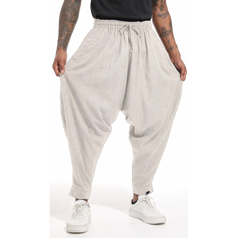 The harem pants made of high quality cotton material, soft, breathable, skin-friendly , keep you cool and relaxed all the time.perfect for indoor and outdoor activities, or lounging around the house, these comfy mens harem pants with elastic waist effortlessly take you from day to night in superior quality comfort.