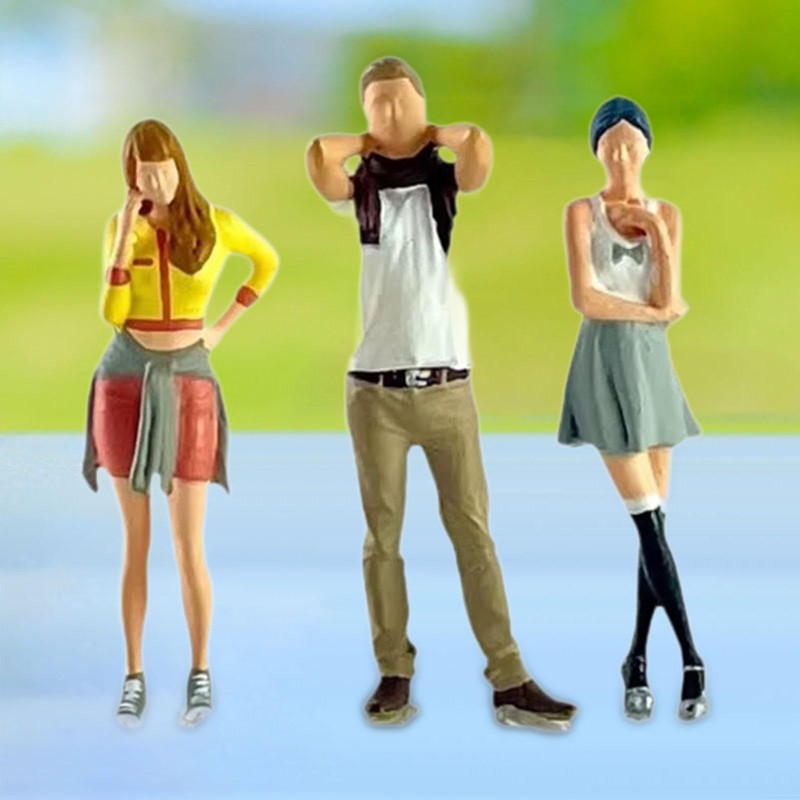 Perfeclan 3Pcs 1/64 Scale People Figures Tiny People Model Collectibles for DIY Scene Decor Hand Painted Model Figures Miniature Scenes