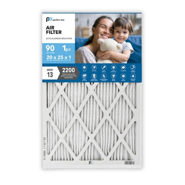 Perfect Aire Elite Air Filter MERV 13 - Electrostatically Charged Pleated Dual Airflow HVAC Filter - Lasts 90 Days (1 Pack, 20x25x1)