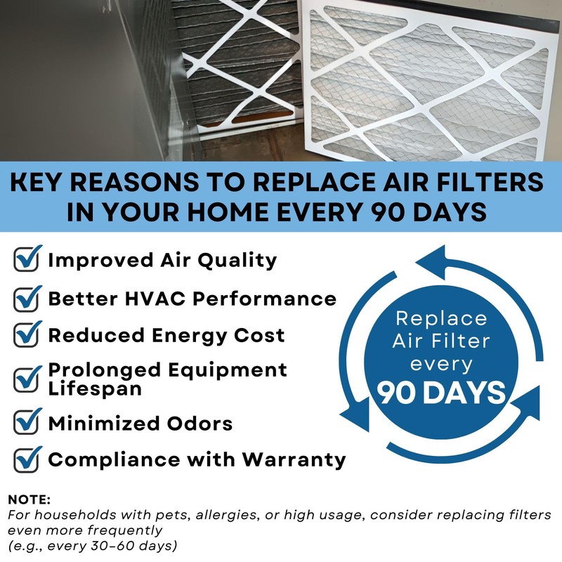 • 90 DAY AIR FLOW MERV 13 FILTER: This electrostatic air filter is designed to provide optimal airflow and filtration within your home or office for up to 90 days. Depending on usage and environmental conditions, replacement may be needed more frequently.